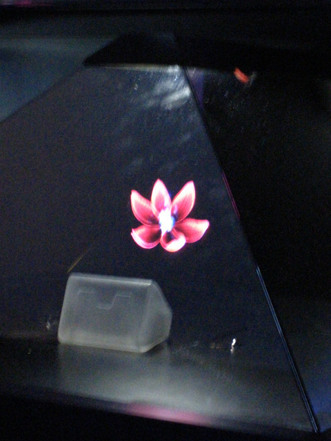 夢想館內,入場後會先請觀眾做到平台上看一株機械花開開關關,享受一下燈光秀和開開關關這樣。
