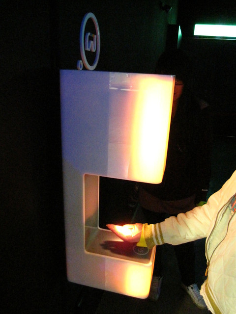 在進去之後會先經過一個3D電視的體驗互動,不用帶3D眼鏡也能看到3D影像,真先進!接下來就會要開始藉由手環感應互動獲取能量。